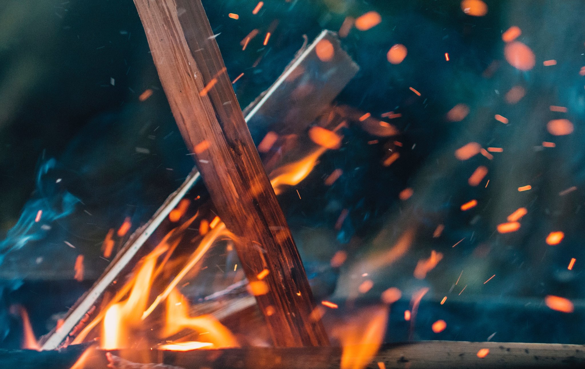 Zeremonie mit Feuer, Wind und Erde.